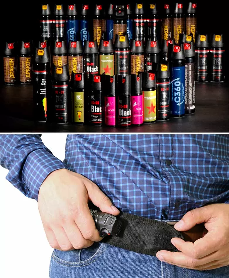 Отличный вариант в качестве гражданского безлицензионного оружия самообороны, в том числе от агрессивных животных. О выборе баллончика можно написать отдельный материал. Давно закончилось то время, когда активно искали газовые баллончики импортного производства. На сегодня компаниями «Техкрим», «Тюменские Аэрозоли» выпускаются продуманные устройства с высокой эффективностью состава, с надёжным клапаном, конструктивно продуманные и доступные для приобретения с 18 лет. Баллончики бывают аэрозольные, струйные и струйно-аэрозольные, также отличаются по объёму — от компактных 25мл для карманного ношения до 650 мл для обороны от диких животных. Наиболее популярны объёмы 25, 65, 75 и 100 мл.