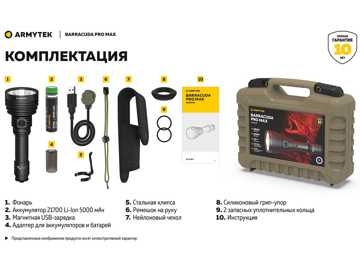 Комплектация Armytek Barracuda PRO Max Magnet USB: