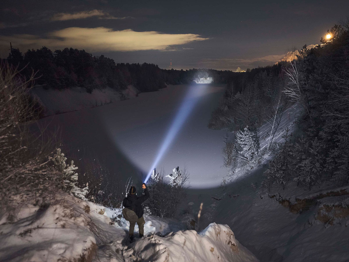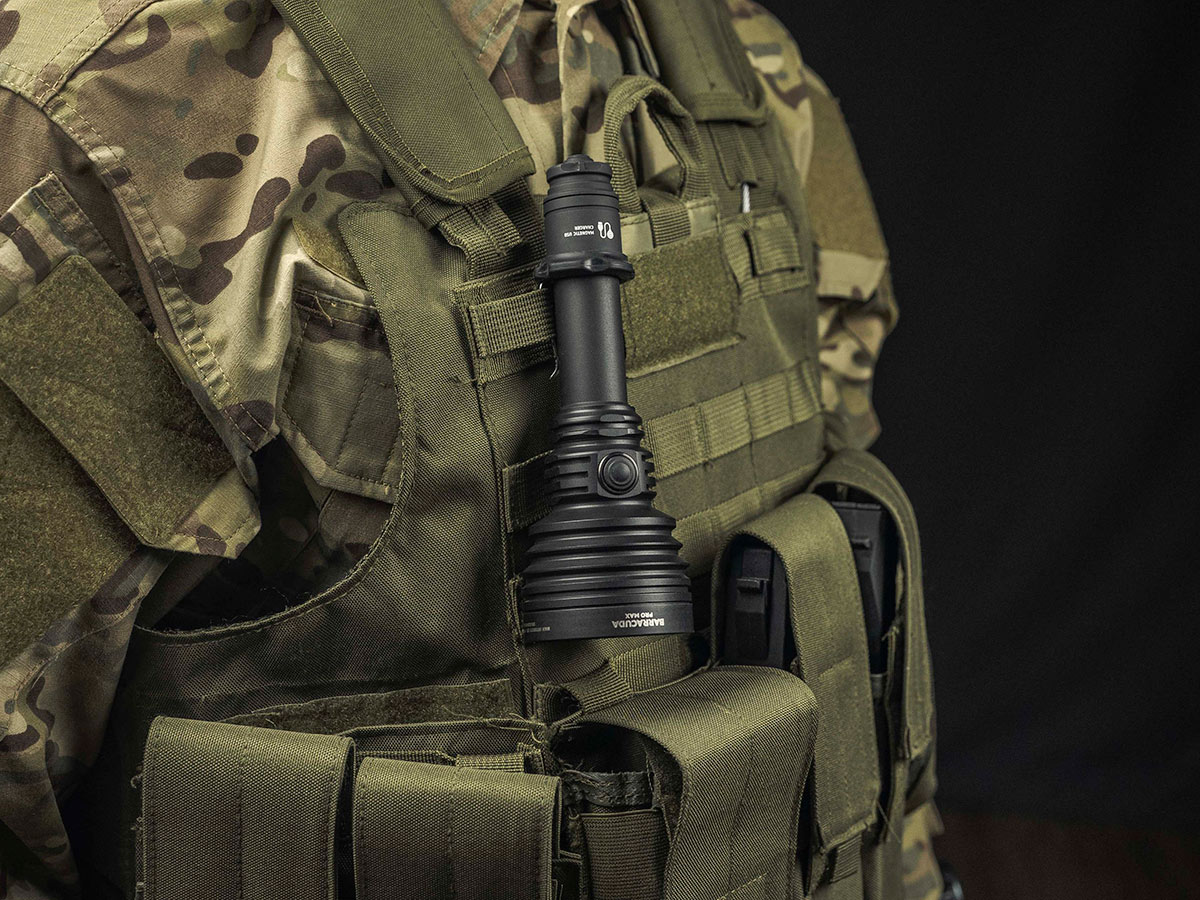 Armytek Barracuda PRO Max — один из топовых поисковых дальнобойных фонарей с узко сфокусированным световым потоком до 1 км.