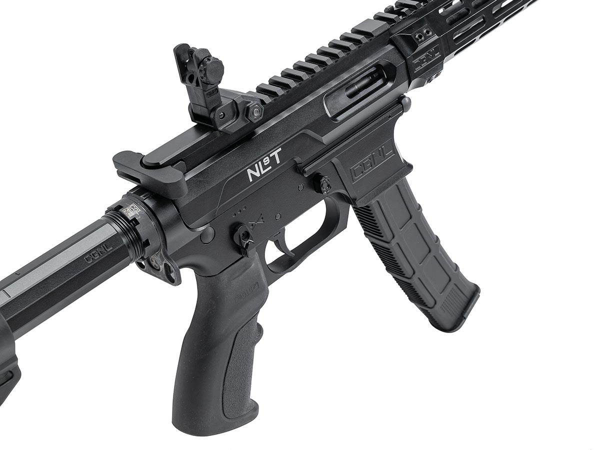 CGNL NL9T — эргономичный карабин под пистолетный патрон на базе модели NL9. Это раскрывает широкие возможности тюнинга — стрелок может подбирать компоненты, чтобы собрать оружие для различных целей. Но в первую очередь он отлично подходит для стрельбы в тире. Главные отличия от NL9 — укороченное цевьё и тонкий контур ствола. На такой карабин можно установить совместимую с «Сайгой-9» ДТКП с заходом на ствол.