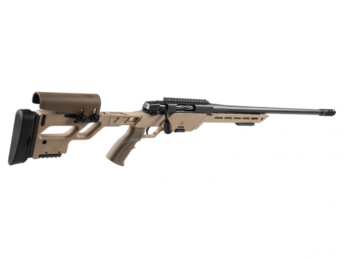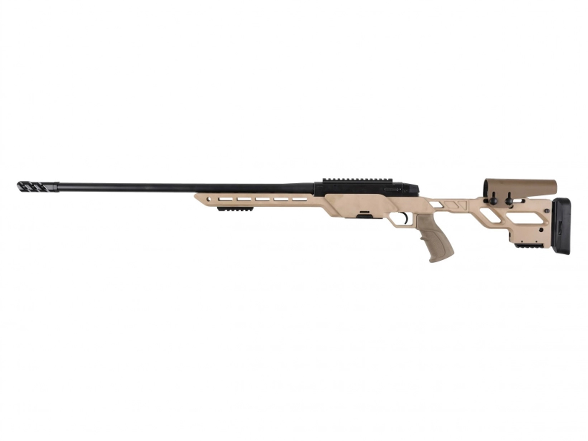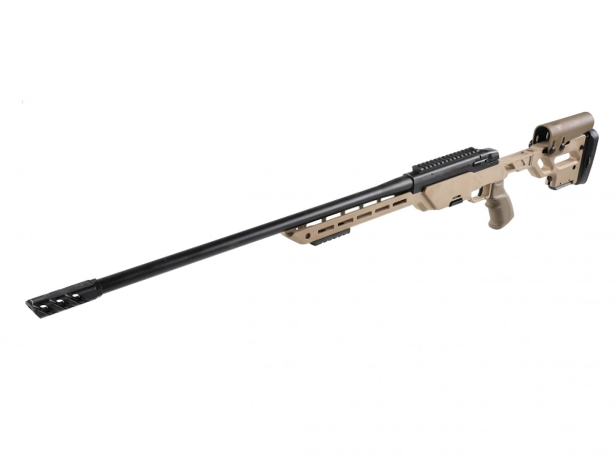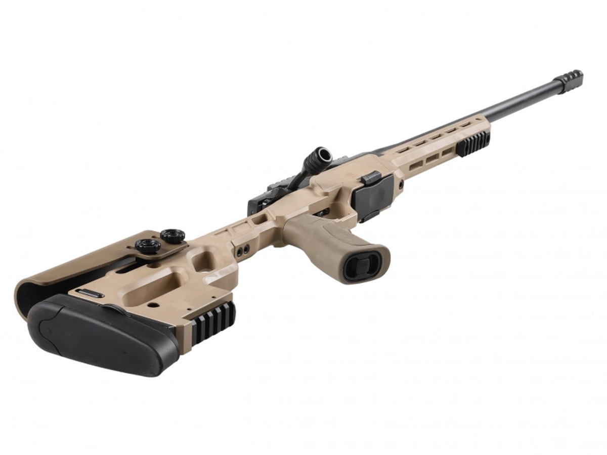 - Шасси выполнено из цельной алюминиевой заготовки и обеспечивает высокую производительность и максимальную точность. По бокам и снизу цевья находятся слоты стандарта M-LOK для крепления аксессуаров.
