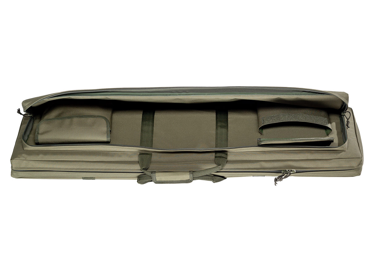 Продуманный чехол с разделителем основного отделения на две секции, благодаря чему можно транспортировать две и более единицы длинноствольного оружия. Внутри предусмотрены крепежные элементы с липучкой "велкро".
