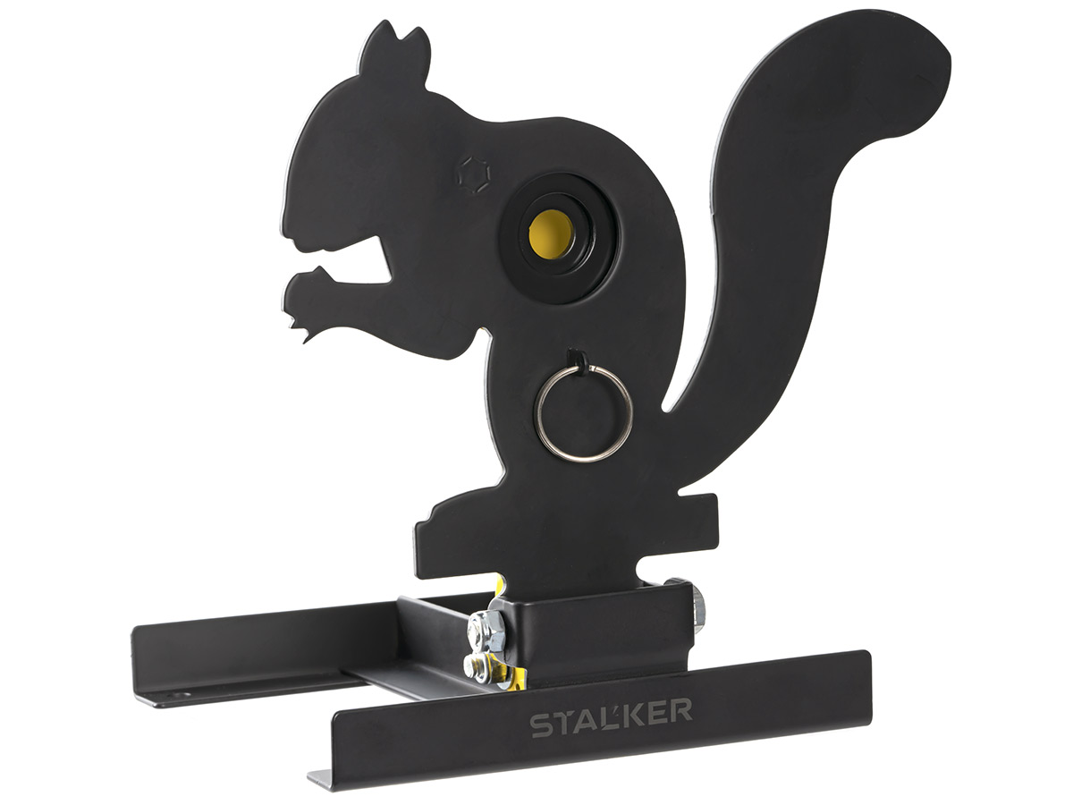 Мишень представляет собой силуэт белки, с отверстием в центральной части. Позади отверстия установлен жёлтый гонг, при попадании по которому мишень падает. Подходит для использования как на открытом воздухе, так и в закрытых помещениях.