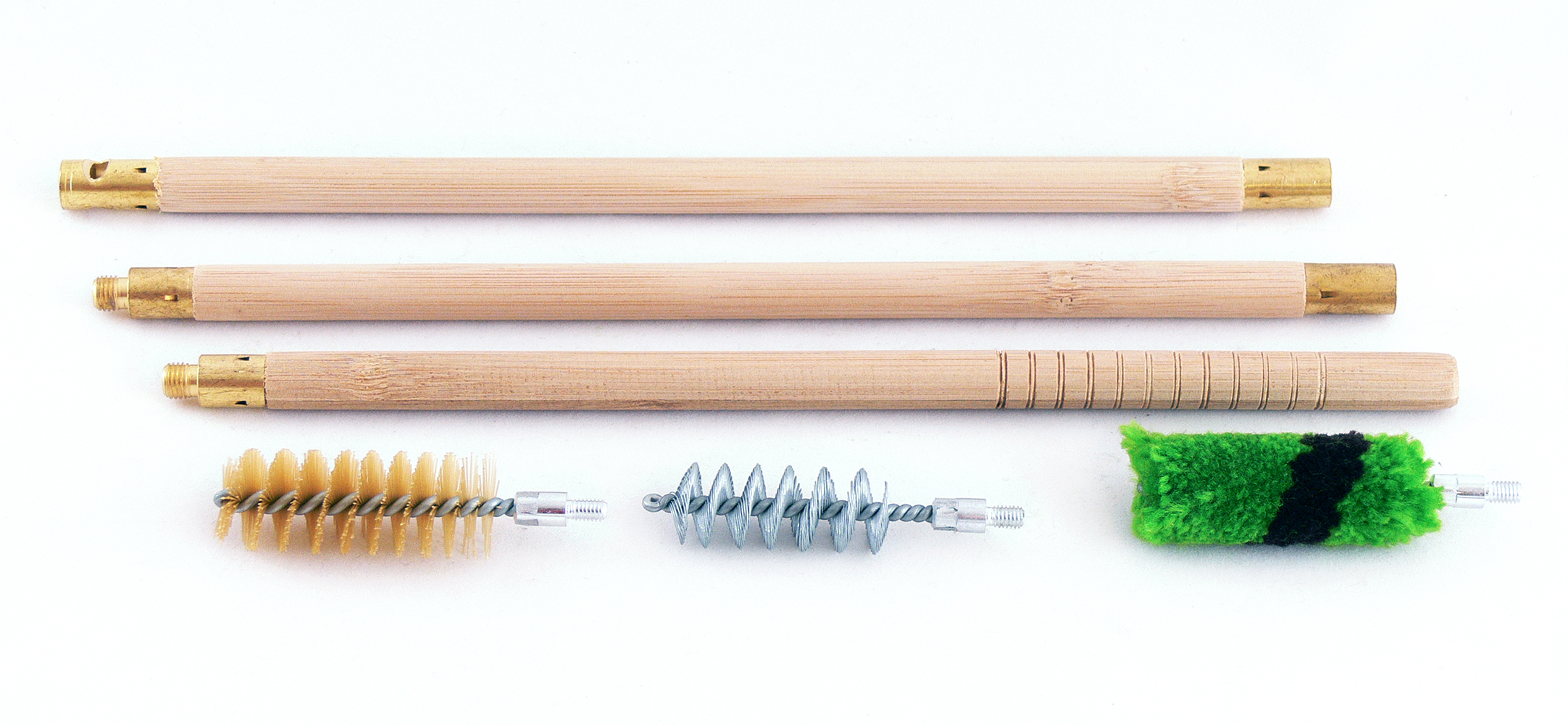Набор для чистки ShotTime для гладкоствольного оружия 20 калибра, составной шомпол (3 колена) + 3 ерша (пуховка, спираль, щетина).