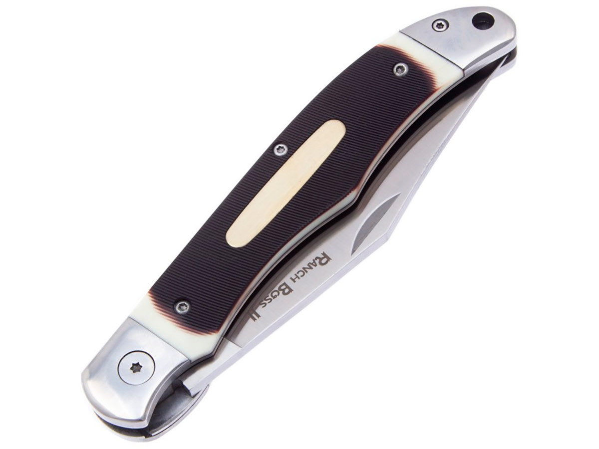 Джентльменский складной нож Cold Steel Ranch Boss 2 — современный нож в мировых традициях. Классический стиль, двуручное открывание с помощью зацепа на клинке, накладки на стальную рукоять сделаны из PVC (поливинилхлорид) и стилизованы под кость.