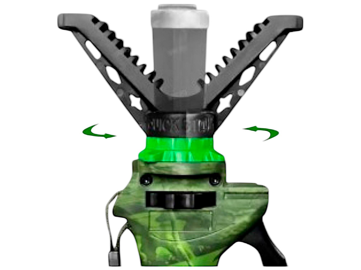 Съёмный V-образный упор вращается на 360°, позволяя плавно наводиться на цель без потери устойчивости. Ребристая поверхность упора предотвращает скольжение и защищает приклад от повреждений. Съёмная конструкция даёт возможность быстрой установки другого оборудования — прицелов, арбалетов, фото- и видеотехники.