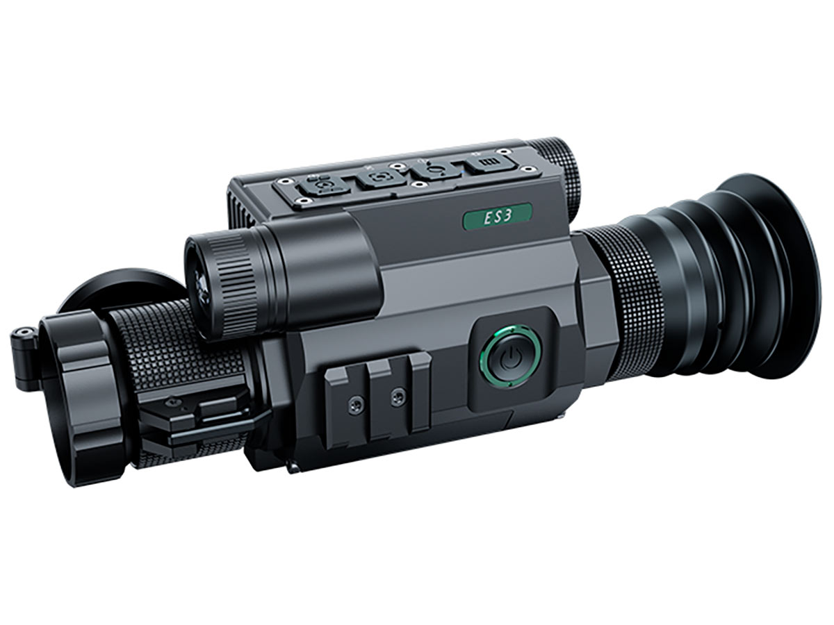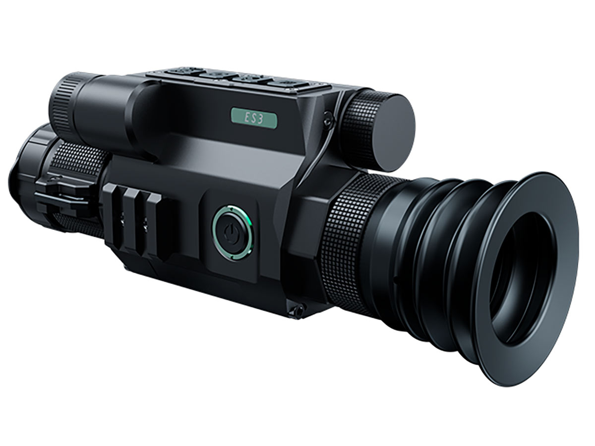 Цифровой прицел ночного видения ATAK ES3-LRF с объективом 70 мм, кратностью 4.5-9x, встроенным не отъёмным ИК-фонарём с возможностью ручной фокусировки луча, длиной волны 940нм и дальностью подсветки до 340 метров.