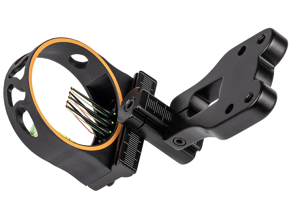 Встроенный пузырьковый уровень помогает удерживать лук строго вертикально, минимизируя ошибки при выстреле. А регулируемая подсветка пинов гарантирует отличную видимость при слабом освещении — на рассвете, в сумерках или в густом лесу. Прицельное окно со стороны стрелка имеет флуоресцентную окантовку оранжевого цвета.