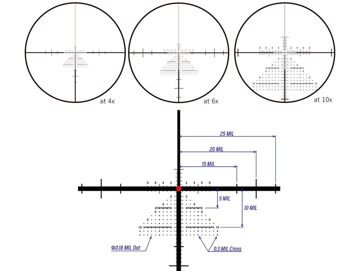 - Двойная прицельная сетка, оптимальная для первой и второй фокальных плоскостей