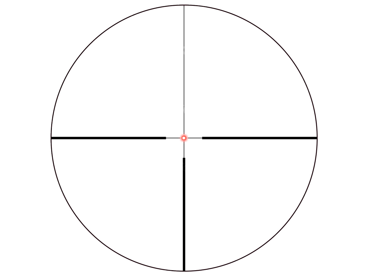 - Сетка прицела расположена во второй фокальной плоскости, соответственно, остаётся неизменно тонкой при изменении кратности, при этом угловые размеры пропорционально меняются. С её помощью охотник может быстро рассчитать и внести необходимые поправки при стрельбе выносом. Яркость подсветки может регулироваться в 6 режимах, что позволяет эффективно подстроиться под окружающие условия.