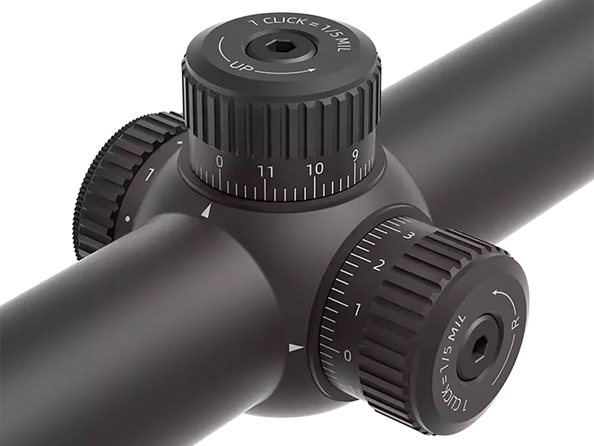 - Для введения корректировок по горизонтали или вертикали (35 MIL) достаточно приподнять барабанчик, произвести нужное количество кликов, опустить его вниз, после чего он фиксируется в неподвижном положении и становится недоступен для внешних факторов. Благодаря функции быстрого обнуления не нужно высчитывать сколько «шагов» было сделано ранее и возвращать настройки вручную. Прицел удобно регулировать в перчатках или на слух, ориентируясь по чётким кликам.