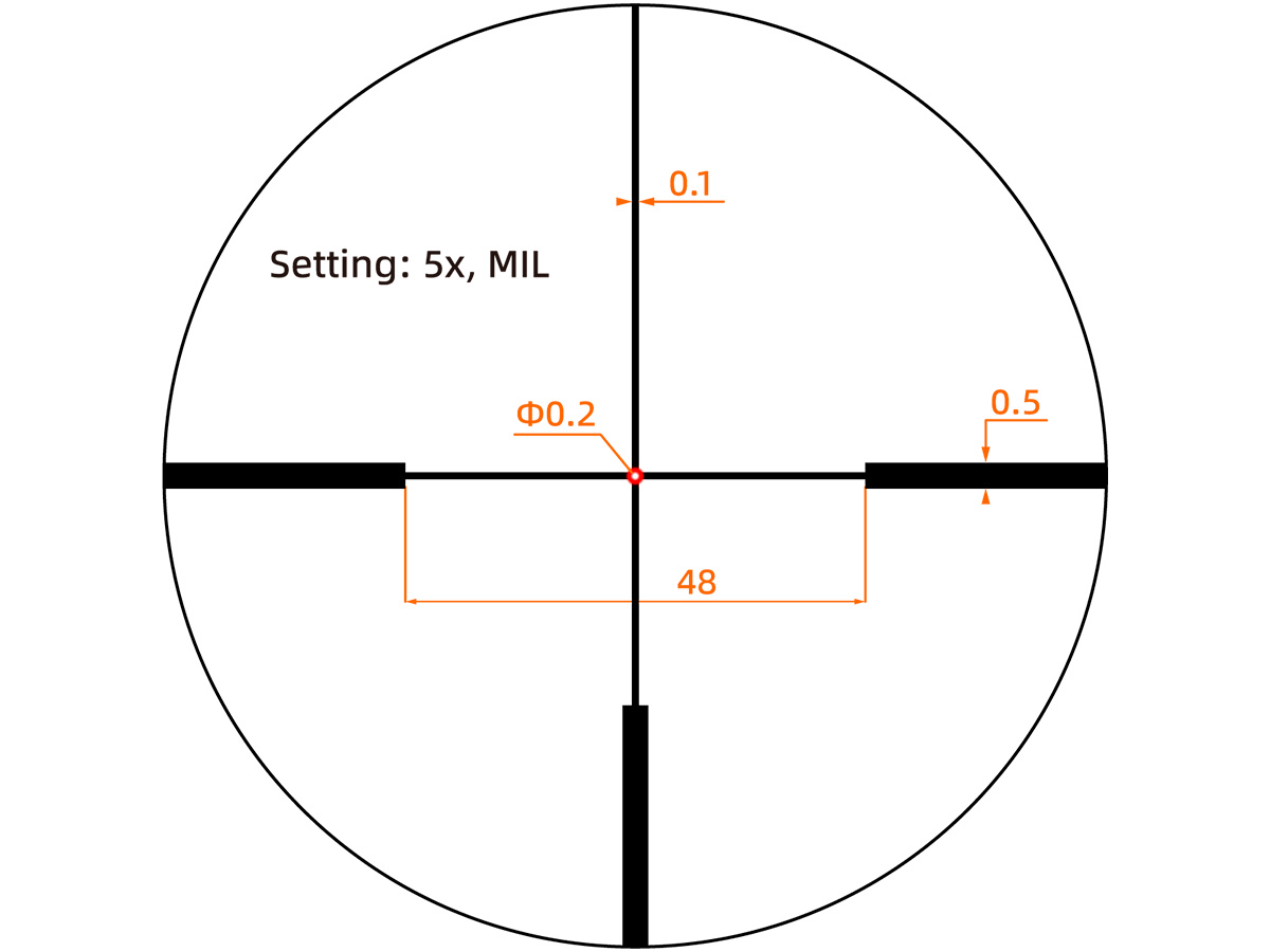 - Сетка прицела расположена во второй фокальной плоскости, соответственно, остаётся неизменно тонкой при изменении кратности, при этом угловые размеры пропорционально меняются. С её помощью охотник может быстро рассчитать и внести необходимые поправки при стрельбе выносом. Яркость подсветки может регулироваться в 6 режимах, что позволяет эффективно подстроиться под окружающие условия.