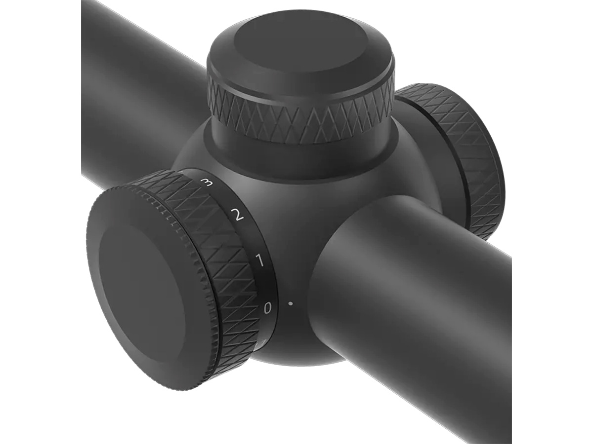 - Для введения корректировок по горизонтали или вертикали (80 MOA) достаточно приподнять барабанчик, произвести нужное количество кликов, опустить его вниз, после чего он фиксируется в неподвижном положении и становится недоступен для внешних факторов. Благодаря функции быстрого обнуления не нужно высчитывать сколько «шагов» было сделано ранее и возвращать настройки вручную. Прицел удобно регулировать в перчатках или на слух, ориентируясь по чётким кликам.