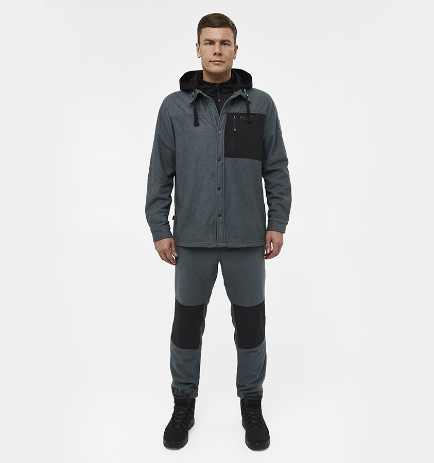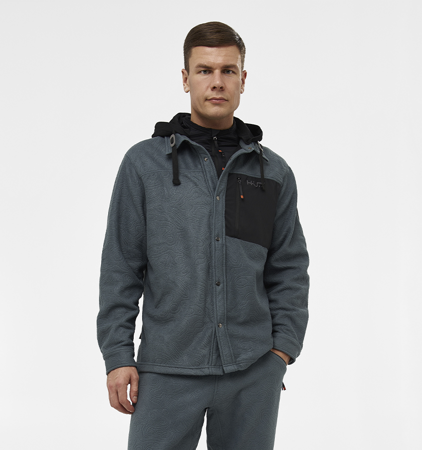 Рубашка мужская H.U.T. Vodla, с капюшоном, флисовая, цвет серый