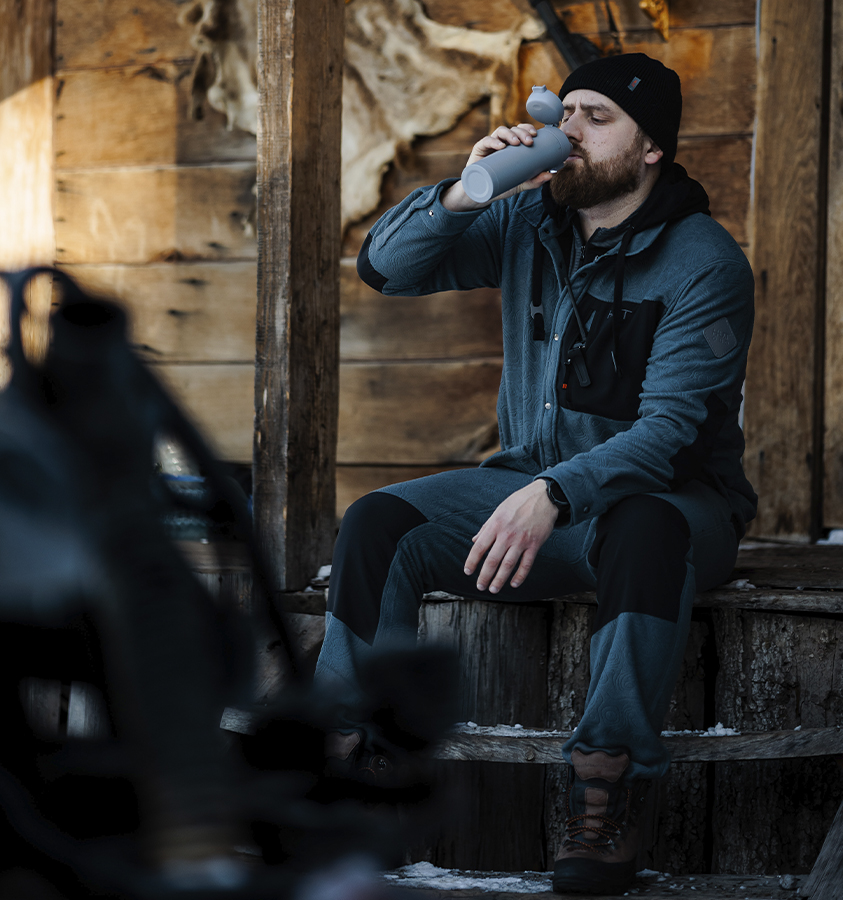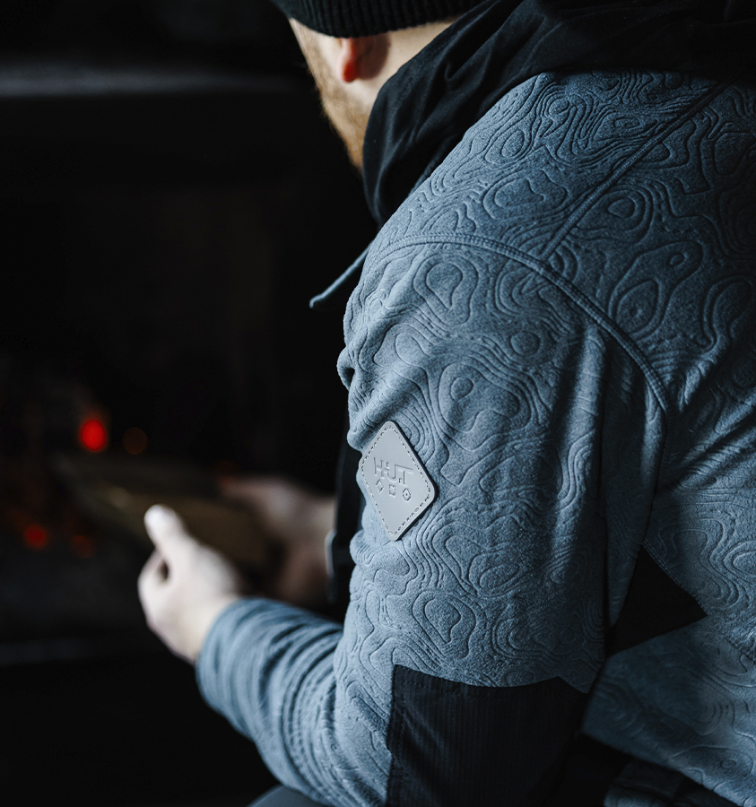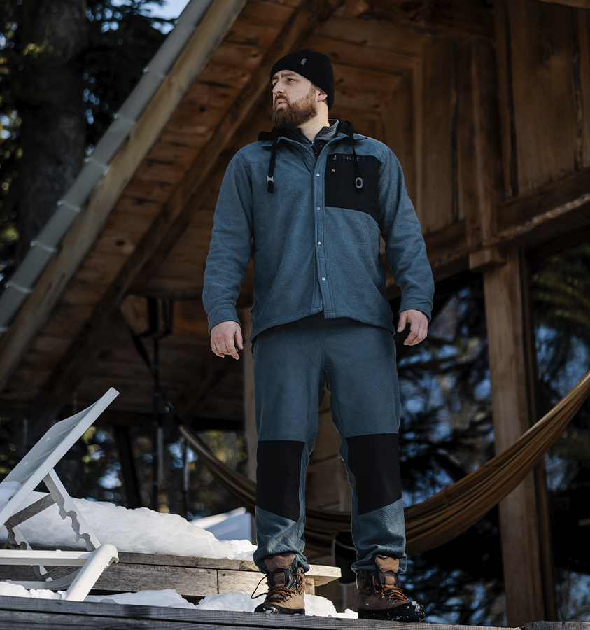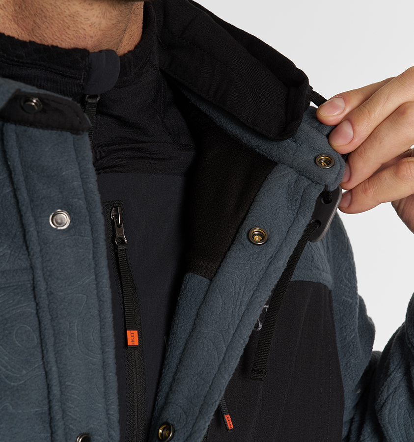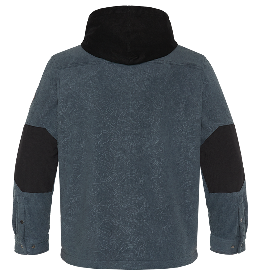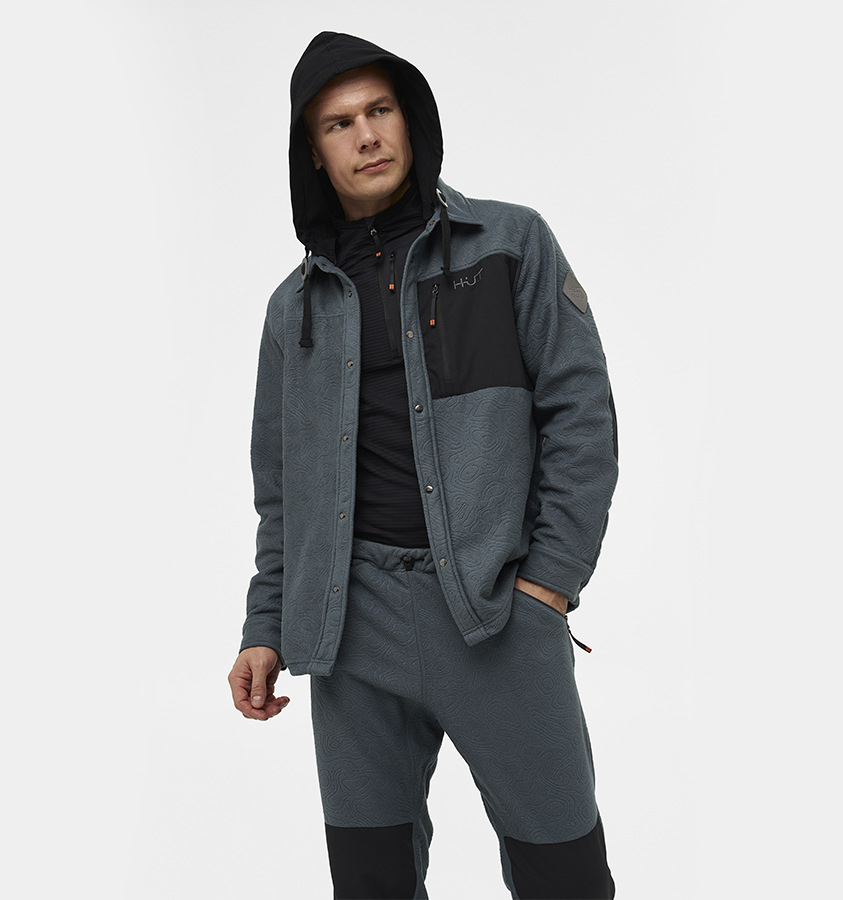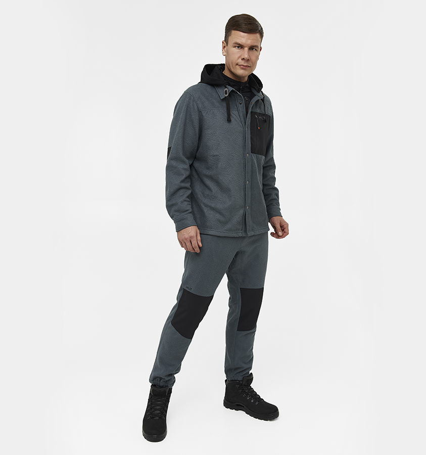 Тёплая рубашка выполнена из очень мягкой, тактильно приятной ткани с тиснённым фирменным узором: флис с антипиллингом для предотвращения образования катышков. Застёгивается на кнопки, спрятанные под потайной планкой.