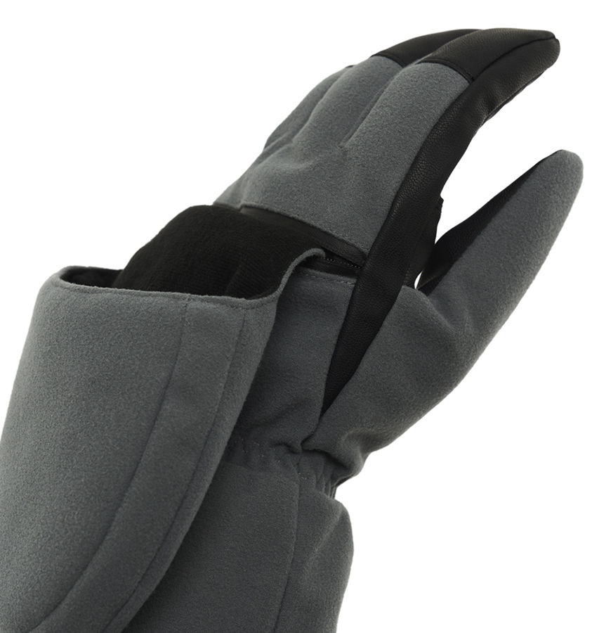 Оригинальная модель перчаток-трансформеров с откидным рукавичным чехлом, который убирается во внутренний карман на тыльной стороне. Подкладка – искусственный мех, делающий перчатки особенно комфортными.