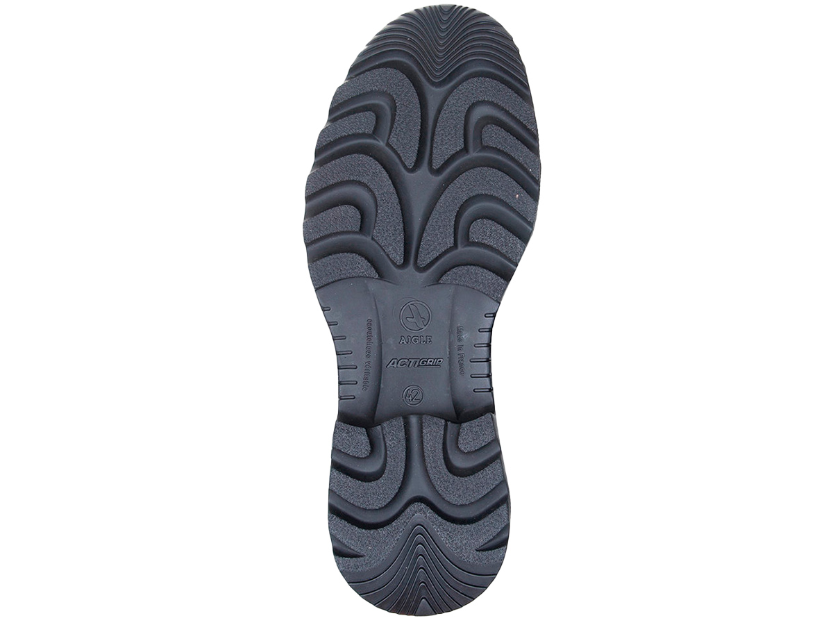 Actigrip: подошва Actigrip создана фирмой AIGLE по уникальной технологии с учётом 150-летнего опыта производства сапог из каучука. Результатом столь долгих изысканий стала подошва, обладающая исключительной эластичностью (подошва-амортизатор), твердостью, устойчивостью, а главное она не скользит. Сегодня эта технология используется в линейке сапог Parcours, которая сочетает все различные комбинации последних новаций. Эти подошвы в сочетании с разным протектором (как правило, сама очищающимся при ходьбе) обеспечивают уверенность в движении даже на скользких камнях покрытых илом.