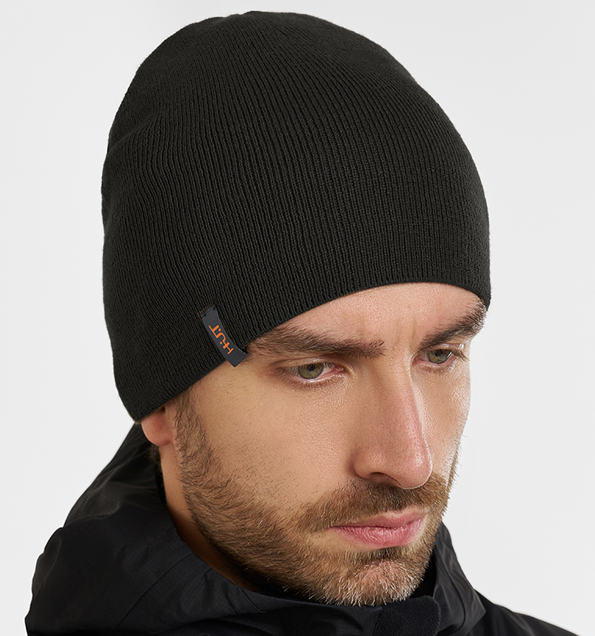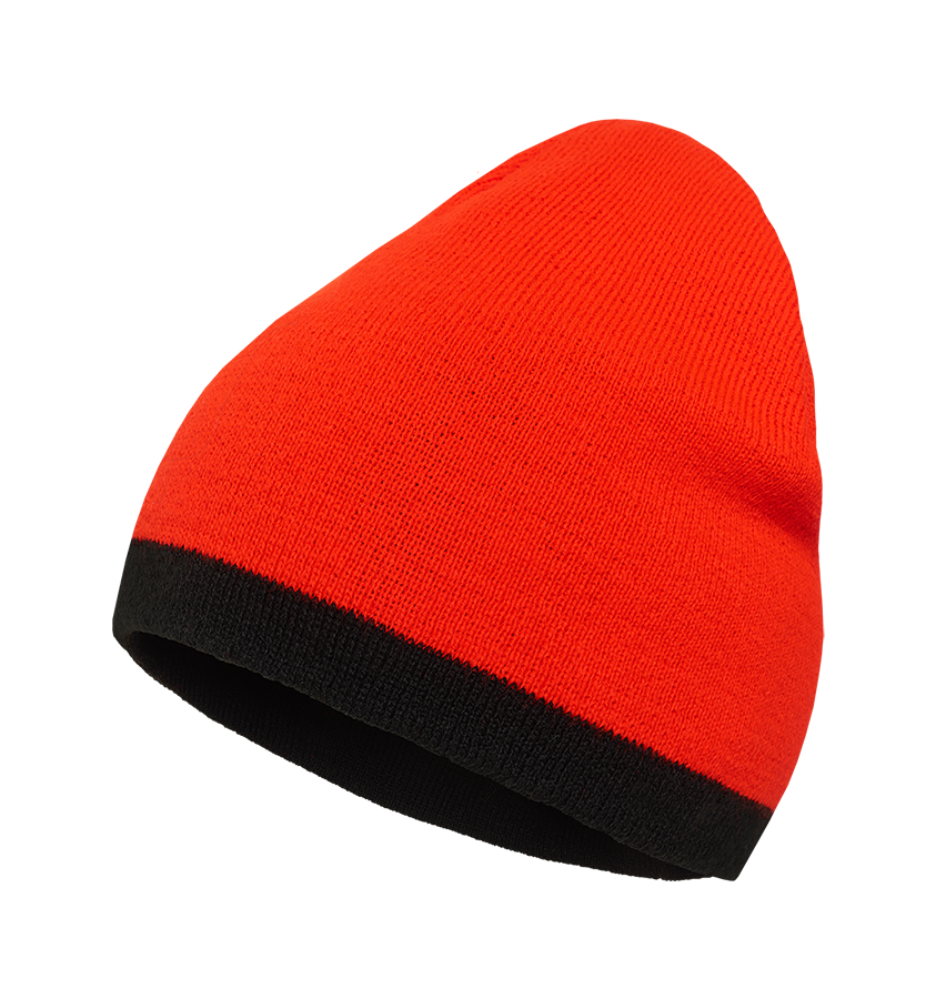 Двусторонняя шапка H.U.T. Dude в цветах чёрный и мандарин. Внутренняя сторона сигнального цвета (мандарин) подойдёт для охоты.