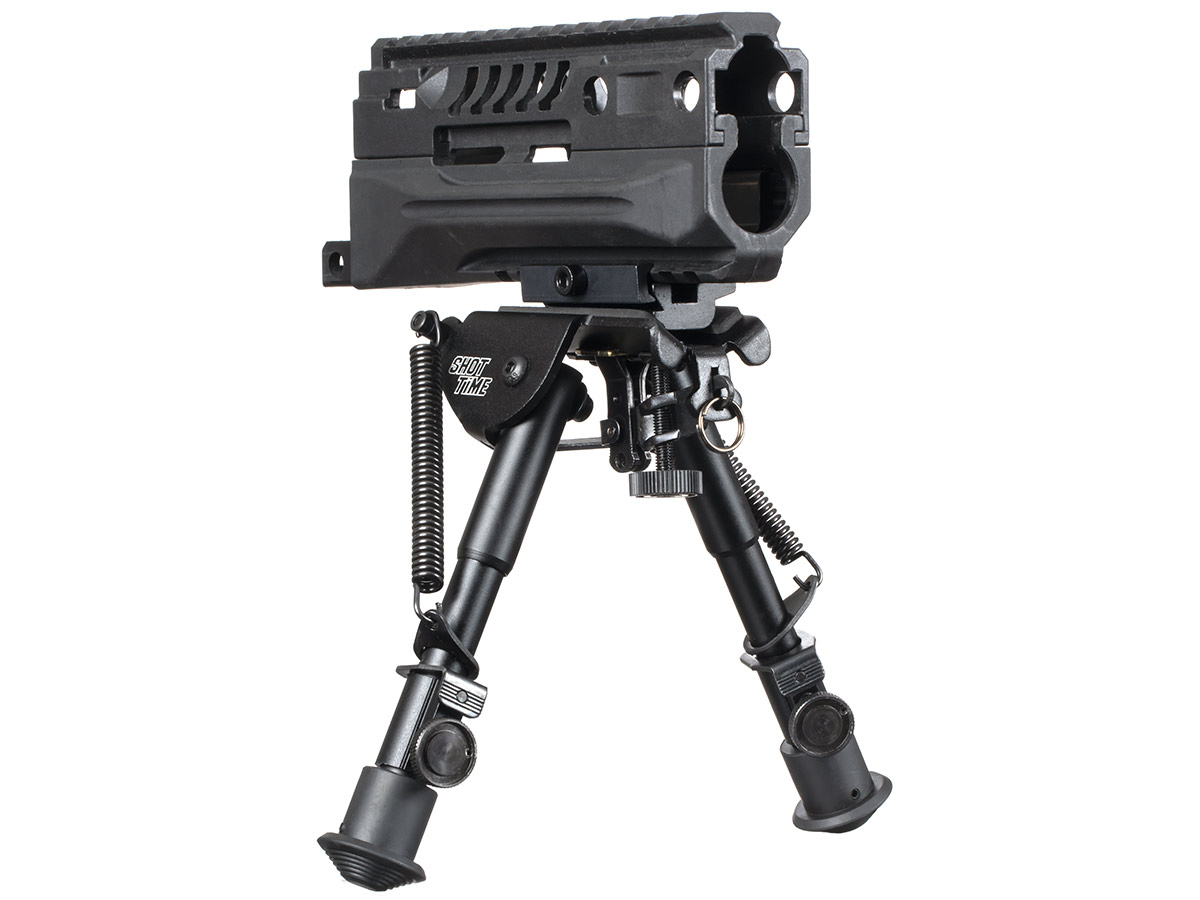 Усиленная конструкция сошек обеспечивает дополнительную фиксацию ствола в направлении стрельбы, повышение кучности и устойчивости оружия. При правильной установке ножки сошек складываются вдоль цевья или ствола только вперёд (в сторону дульного среза).
