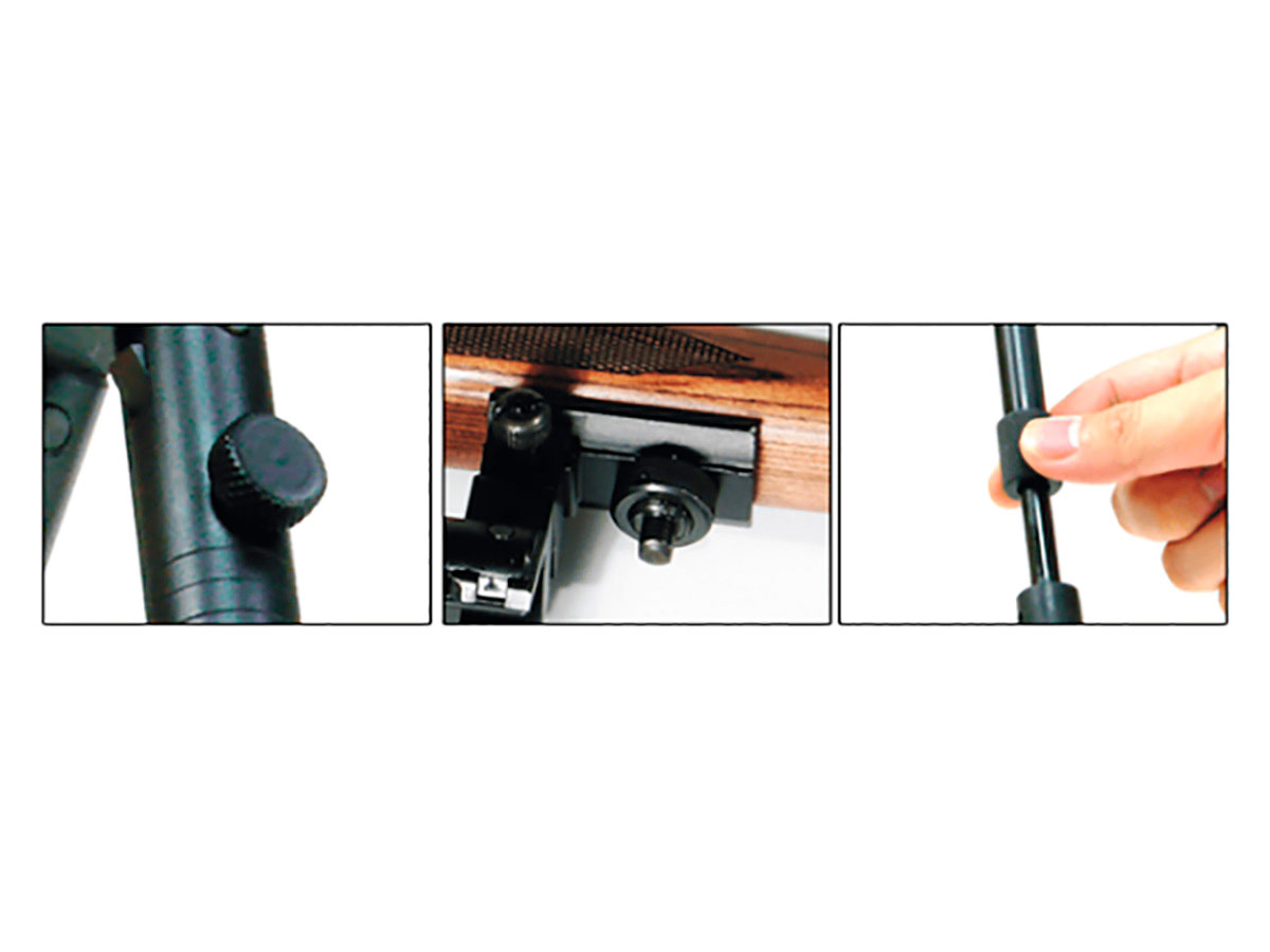 - Плавная регулировка длины. Фиксирование нужной длинны производится при помощи винтового зажима. При ослаблении этого зажима ножки автоматически выдвигаются на всю длину