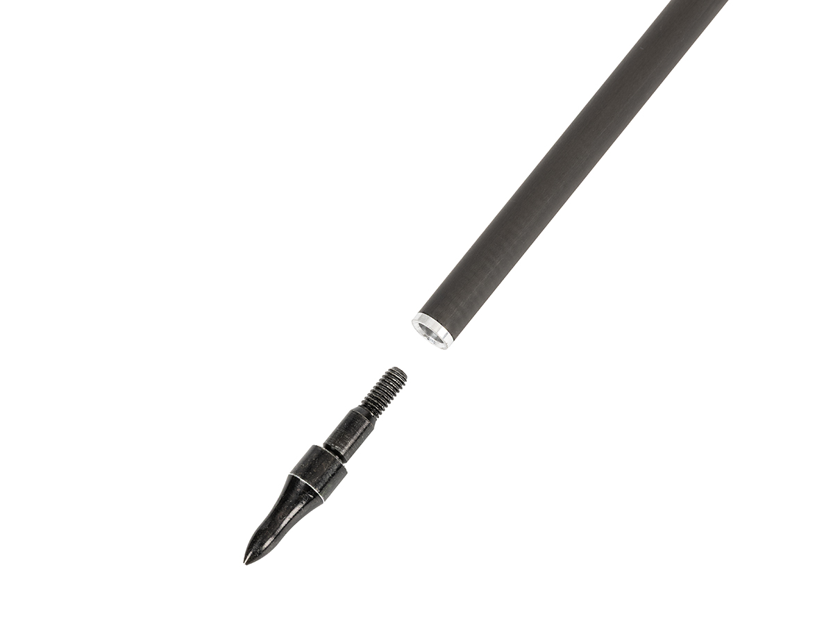 Сменный наконечник спортивного типа изготовлен из стали. Вкручивается в инсерт, имеет стандартную лучную резьбу и может быть легко заменён на любой другой, в том числе охотничий.