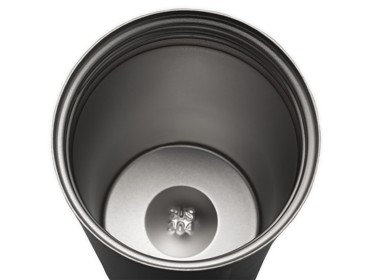 Колба и корпус изготовлены из высококачественной пищевой нержавеющей стали. Вакуумная колба обеспечивает длительное сохранение температуры напитка. Внешнее матовое покрытие термокружки долговечно и приятно на ощупь. Резиновая накладка (противоскользящее основание) на дне придаёт устойчивость, не скользит и не царапает поверхность.