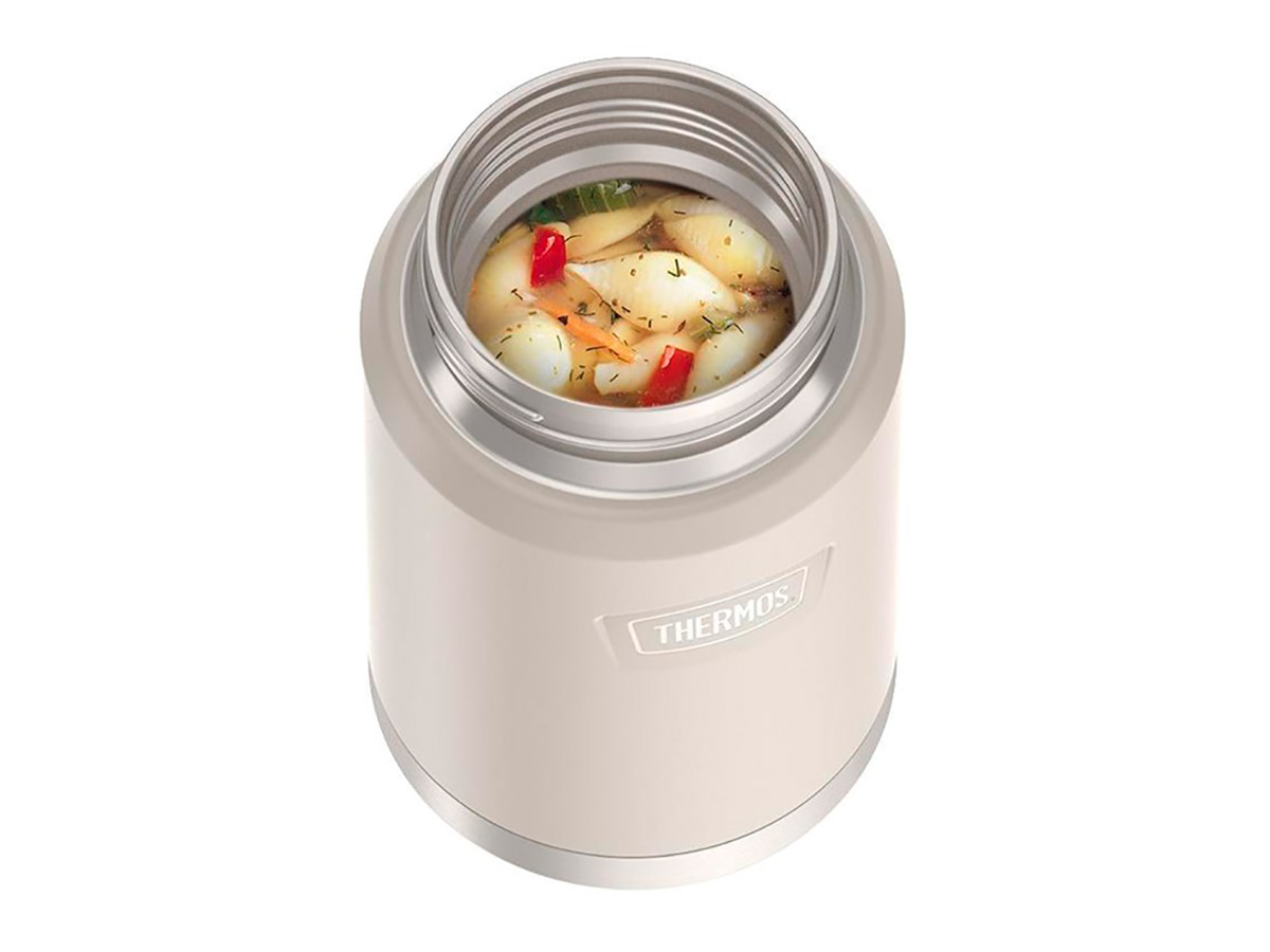 THERMOS IS-301 SN серии ICON предназначен для еды (первых или вторых блюд), имеет объём 0,71 литра и весит 520 грамм. Термос поддерживает температуру горячих блюд 14 часов, а холодных — 24 часа. Это полезная замена фастфуду и перекусу на бегу. Широкое горло, оптимальный объём, универсальная крышка-чашка и складная ложка из нержавеющей стали позволят полноценно пообедать горячей домашней пищей вне дома в любых условиях: автопутешествия, походы, охота и рыбалка, туризм.