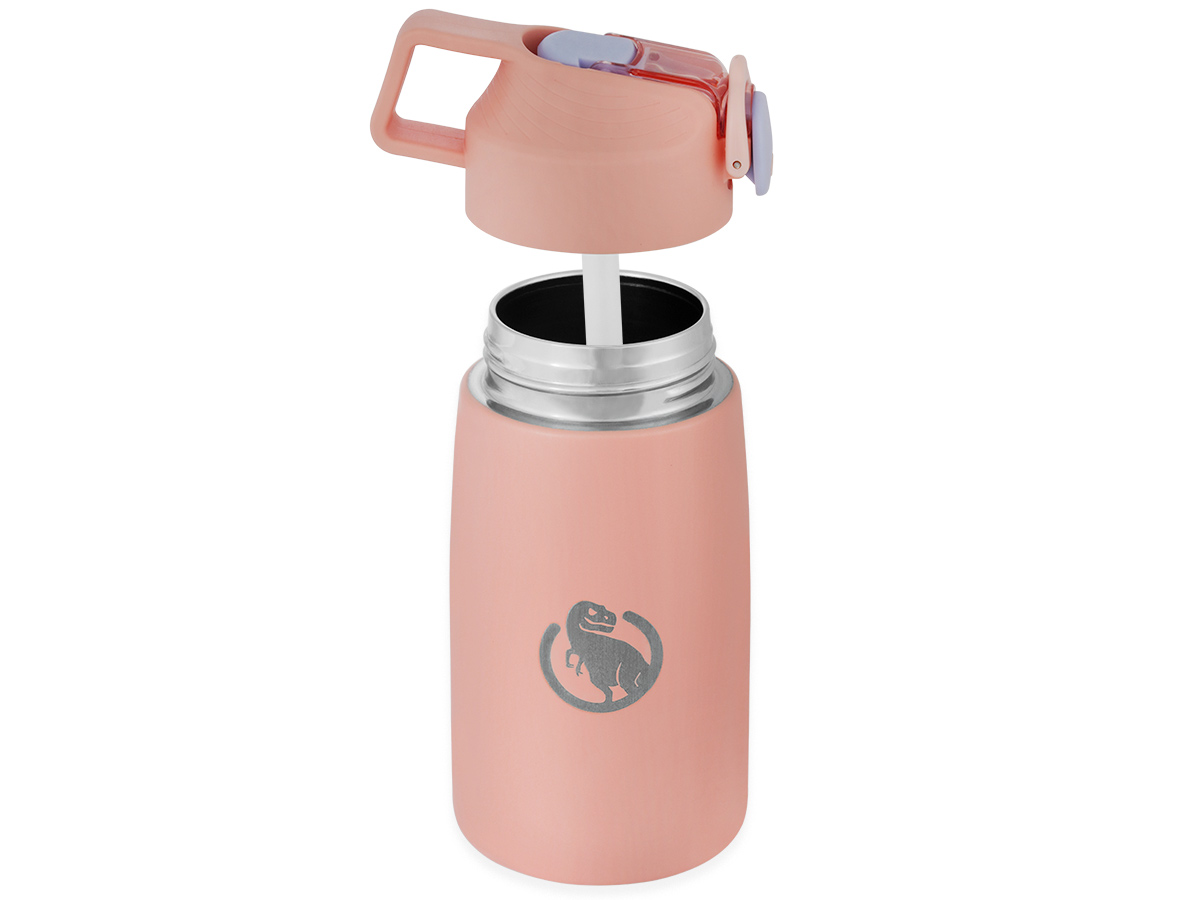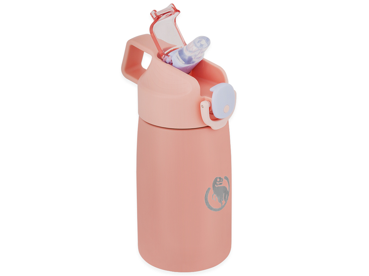 Встроенная трубочка позволяет пить, не меняя положения термокружки, а кнопка с защёлкой даёт возможность использовать термокружку одной рукой. Снаружи силиконовый поильник закрывается пластиковой заглушкой и всегда остаётся чистым.